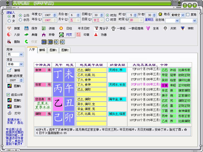 命(日干)的强弱指数(软件估计值,仅供参考)10.65